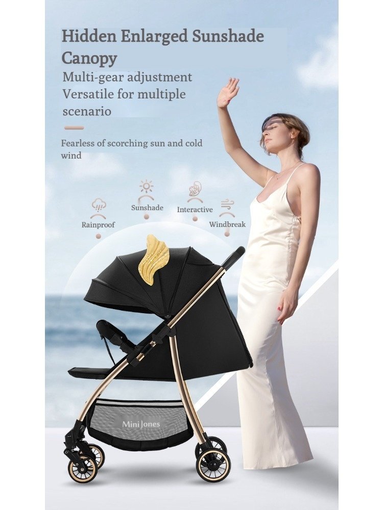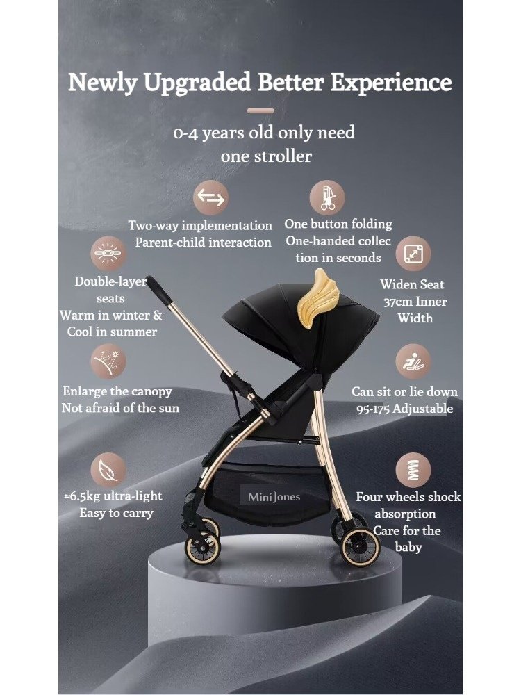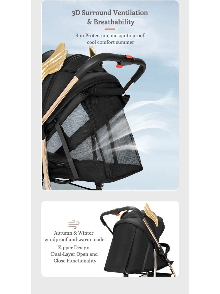 The newly-upgraded high landscape baby stroller is designed for children aged 0-4, it 's gold wings as a unique decorative feature , adding a touch of elegance to its appearance. Combining stylish looks with excellent performance.